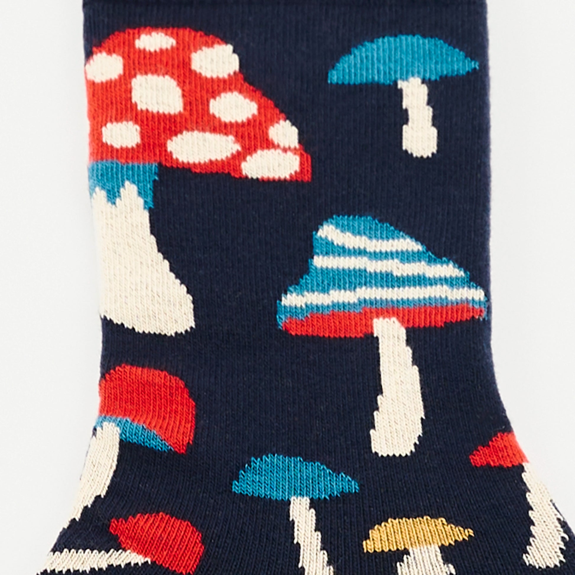 - Calcetines con dibujos de setas. Color azul marino y detalles de colorines.